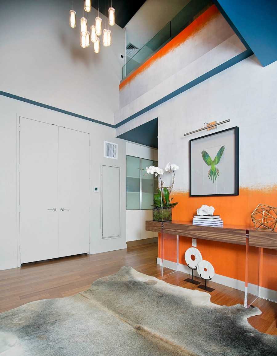 Если вы используете другие материалы, то пусть стена, в которой расположен вход, будет более яркой или тёмной, в то время как остальные будут более спокойными, светлыми и нейтральными.