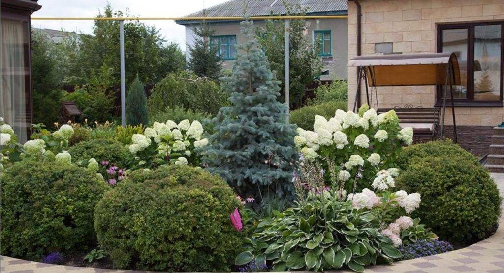 Миксбордеры из хвойных, лиственных и многолетников выглядят нарядно с весны до осени