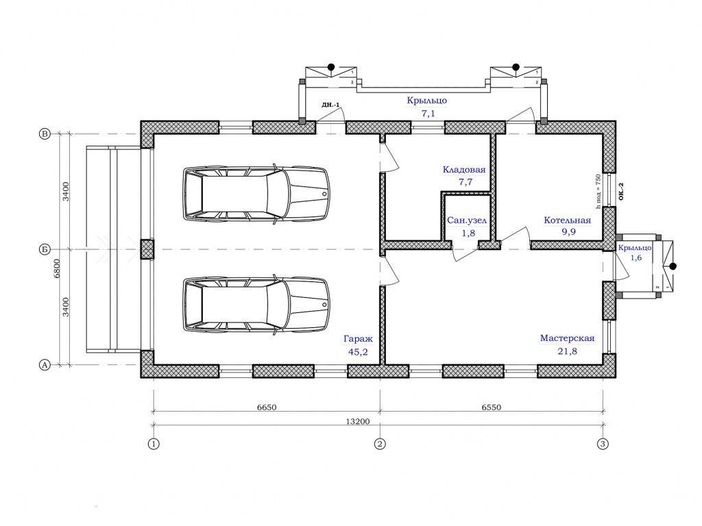 Гараж с расширенным хозблоком
