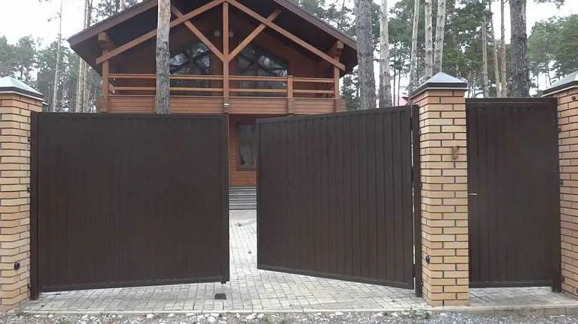 Так как профнастил это универсальный материал, то его в равной степени можно использовать как для забора, так и для сборки ворот, которые чаще всего делают распашными или откатными.