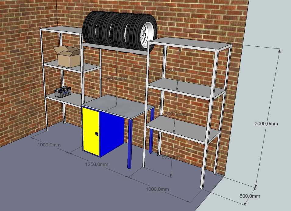 Если на нем будут размещены тяжелые вещи, например, запчасти или инструменты, не стоит делать полки слишком длинными, чтобы они не провисали со временем. Длина их не должна превышать 1 метра, при этом их можно дополнительно укрепить металлическим профилем.