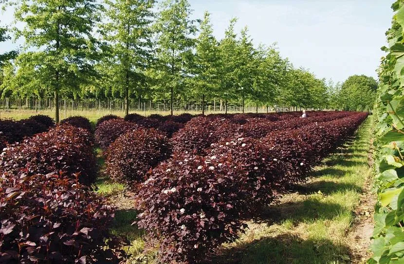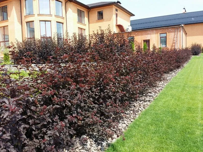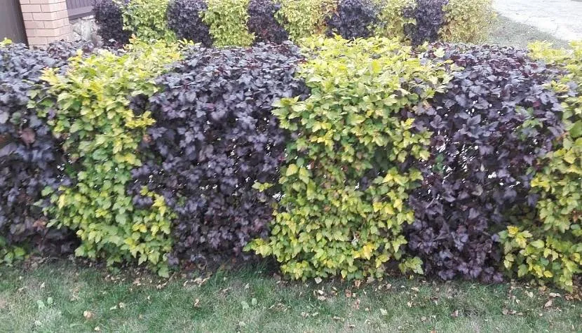 Для создания живых изгородей предпочтительней приобретать культиваторы Luteus и Dartys Gold с презентабельной золотисто-желтой кроной или Diabolo с пурпурной листвой. Однако следует помнить, что желтизну листовые пластины приобретают к осени, а пурпурные кусты, как и садовый гибискус, демонстрируют свою красоту только на солнечном месте.