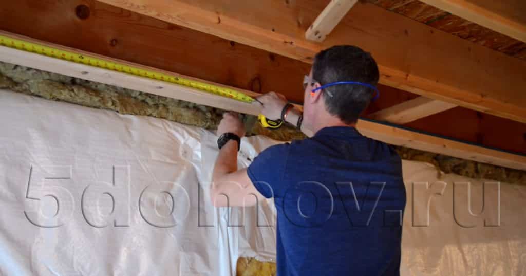 Горизонтальные рейки обычно располагают с интервалом в 400—600 мм, а вертикальные устанавливают вдоль стены таким образом, чтобы они совпадали своими центрами с краями панелей или гипсокартона. Желательно, чтобы в местах стыков ширина реек каркаса была не менее 7,5 см. Вертикальные доски или рейки прибиваются к стене гвоздями длиной не менее 7—10 см. Если стену пробить трудно, нужно просверлить отверстия и вставить пробки, а уже в них вбить гвозди.