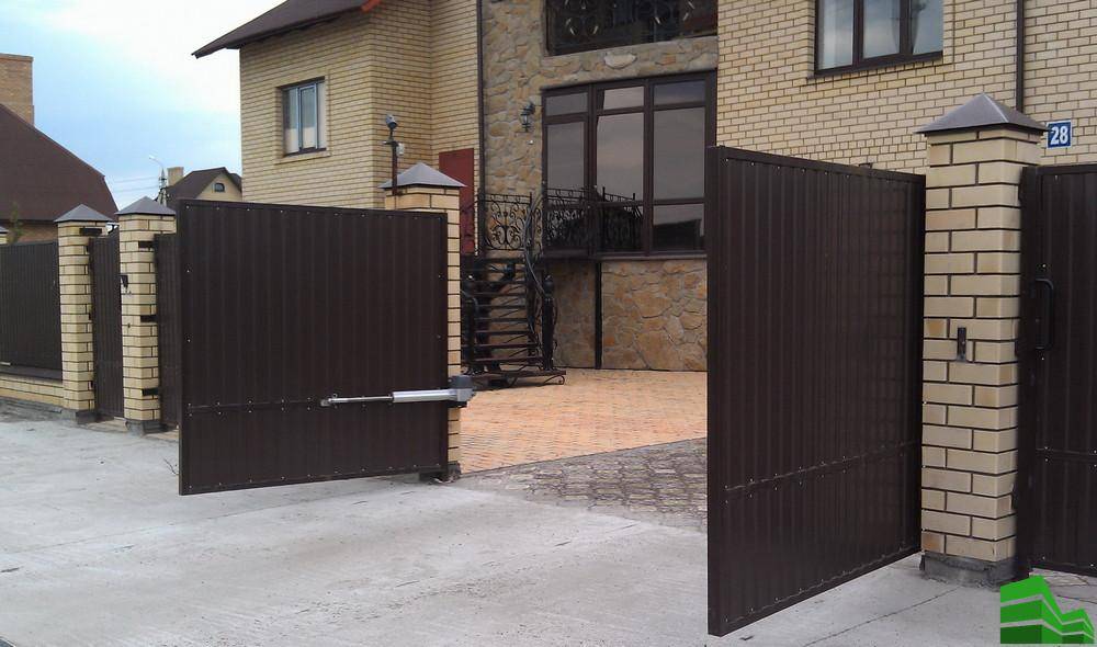 Открывание распашных ворот осуществляется по классической схеме: пара створок распахивается в разные стороны. Для того чтобы контролировать процессы открывания и закрывания, используются специальные рычаги. На каждой створке имеются электрические приводы, от которых с помощью рычагов передается энергия.