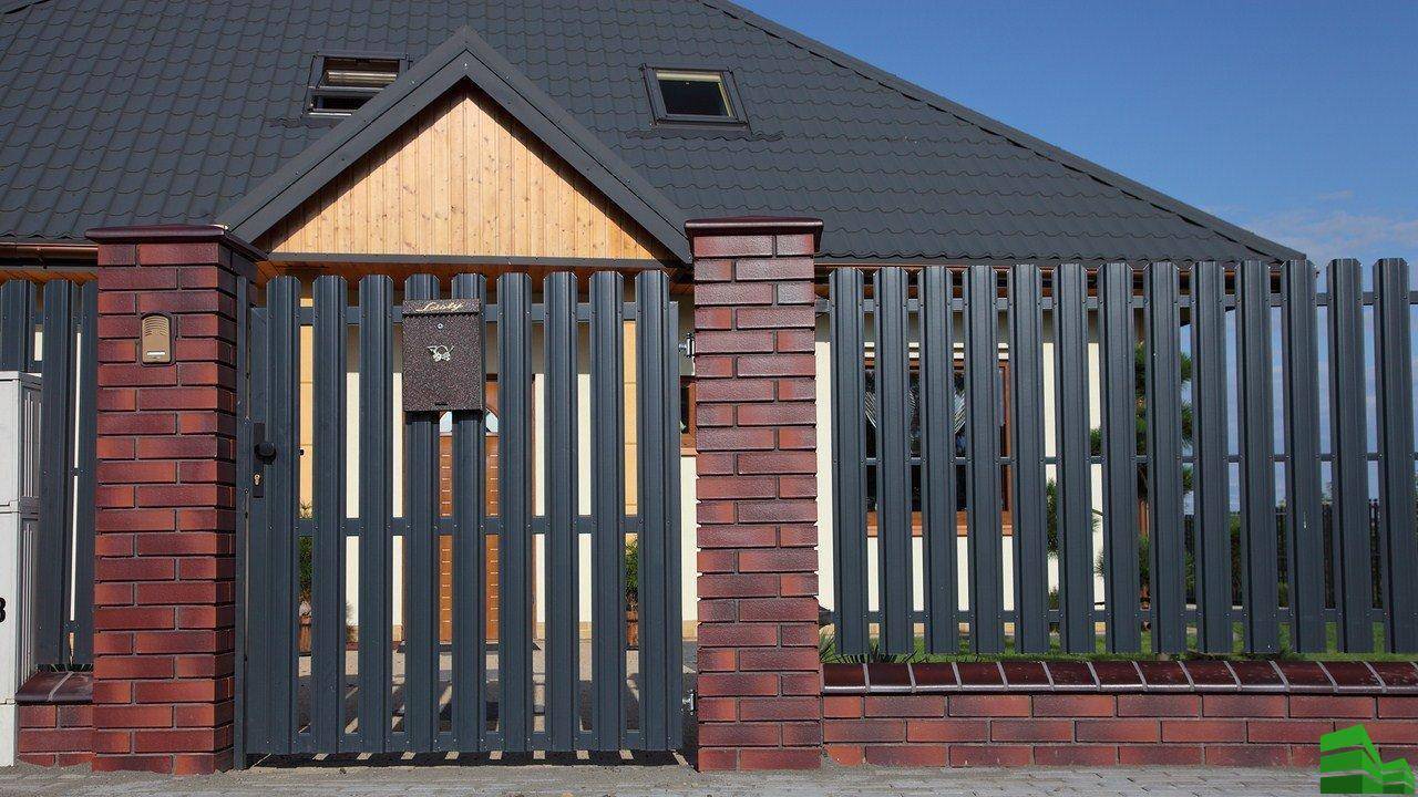 Ворота металлические требуют такой же входной группы. Металлический штакетник способен дополнительно укрепить защиту частной собственности, придать внешнему ограждению совершенно новый вид.