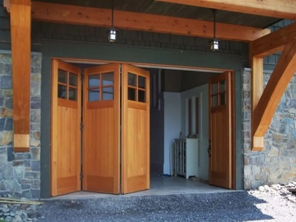 Этот тип гаражных ворот представляет собой несколько створок, установленных вертикально, которые при открытии складываются в книжку. По сути, высоту проема, как и распашные модификации, они не изменяют, потому что открываются в горизонтальном направлении. Что касается ширины, то здесь расчет ведется с учетом толщины каждой секции, их количества, а также способа открытия.