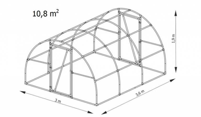 В типичной арочной теплице диаметр этого полукруга соответствует ширине теплицы 3 м, а высота прямых стен составляет 60 см, так что общая высота теплицы равна 2,1 м.
