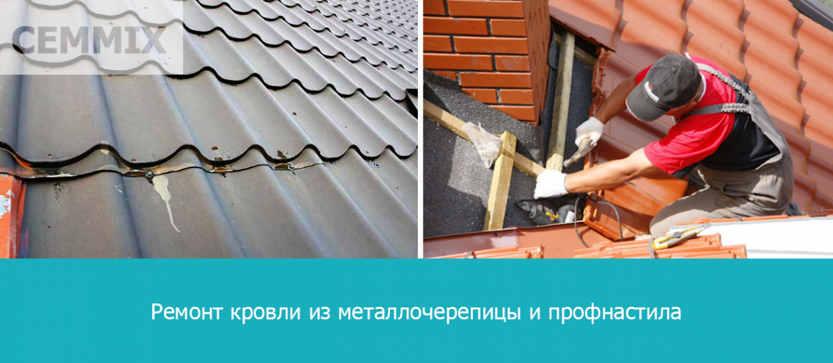 Чтобы отремонтировать такую крышу, металлочерепицу снимают, осматривают лаги и стропила, затем приступают к замене кровельного материала: