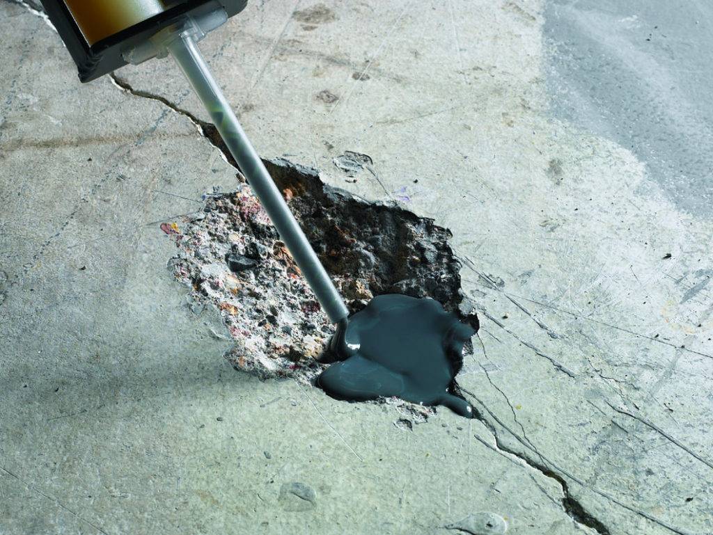 После полного высыхания грунтовки поврежденные места заполняются смесью «Ризопокс 3500» и кварцевого песка. Смесь должна заполнять трещину чуть выше уровня поверхности.