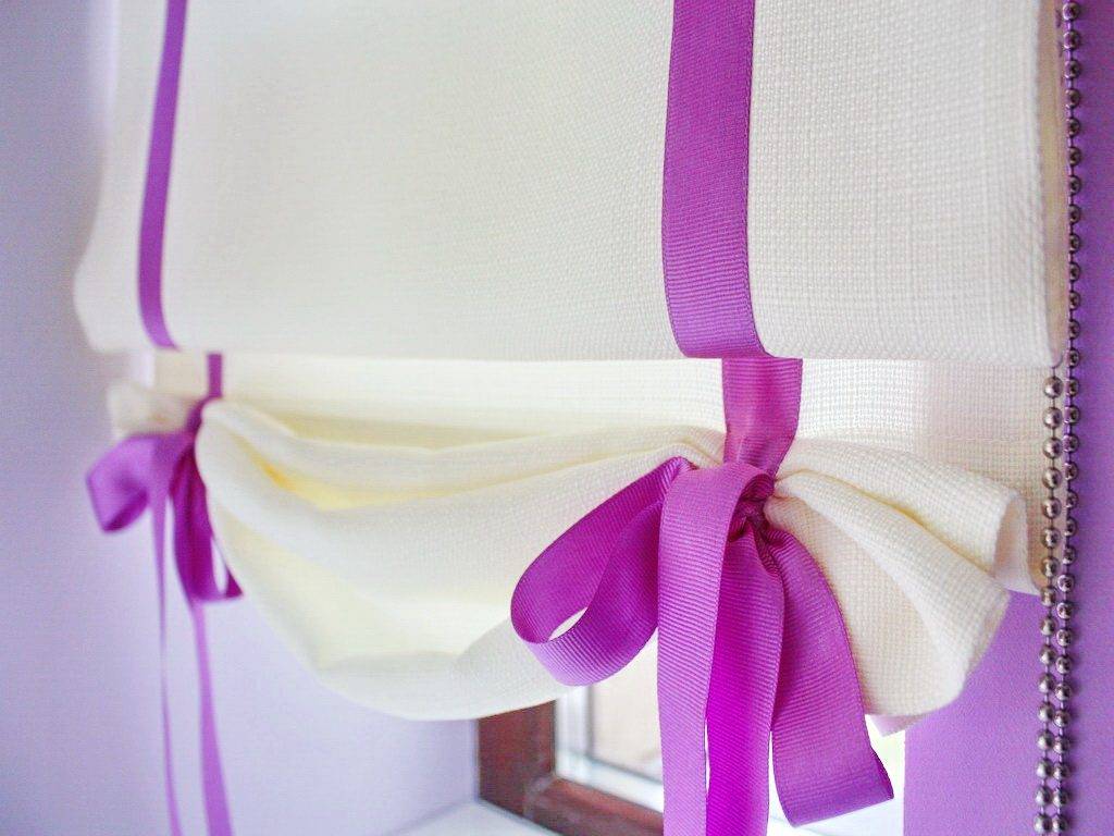 Римские шторы в детскую для девочки дополняют маленькими бантиками или одним большим, бахромой и кисточками, оборками. Эффектно смотрится атласная кайма или отделка. Можно добавить нежный воздушный тюль.