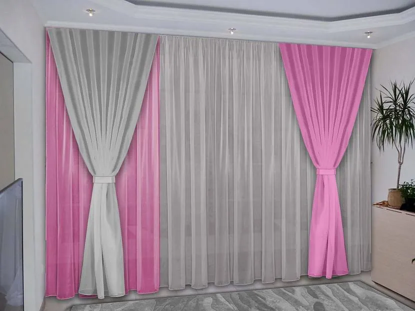 Сами по себе розовые шторы уже выглядят привлекательно и необычно. Однако можно создать еще более интересные эффекты, если скомбинировать розовые шторы со шторами других цветов.