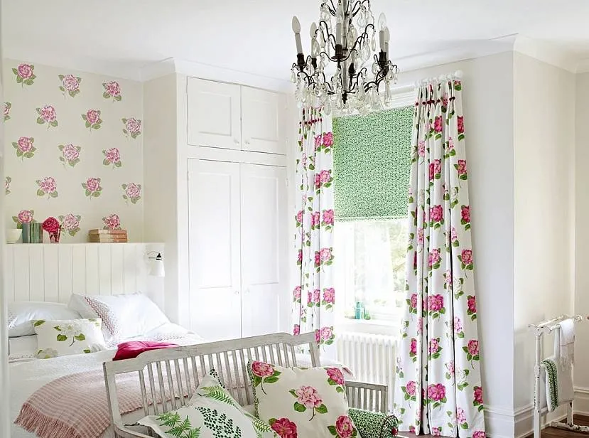 - стиль шебби шик нуждается в шторах из ситца бледно-розового тона;