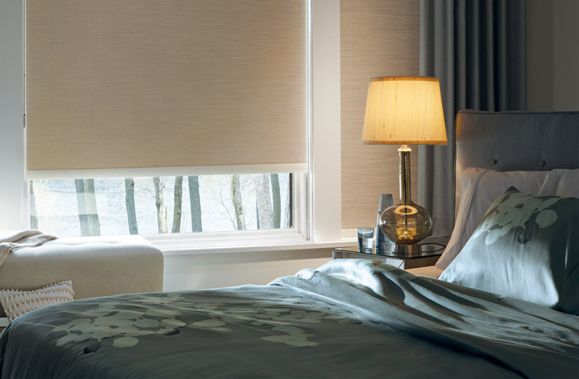 Именно в спальне удобно использовать рулонные шторы на электроприводе и управлять ими с помощью пульта, особенно когда не хочется вставать с кровати. Этот вариант также отлично подойдет для высоких или панорамных окон.