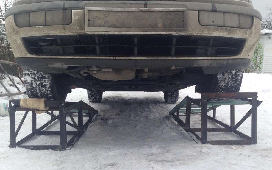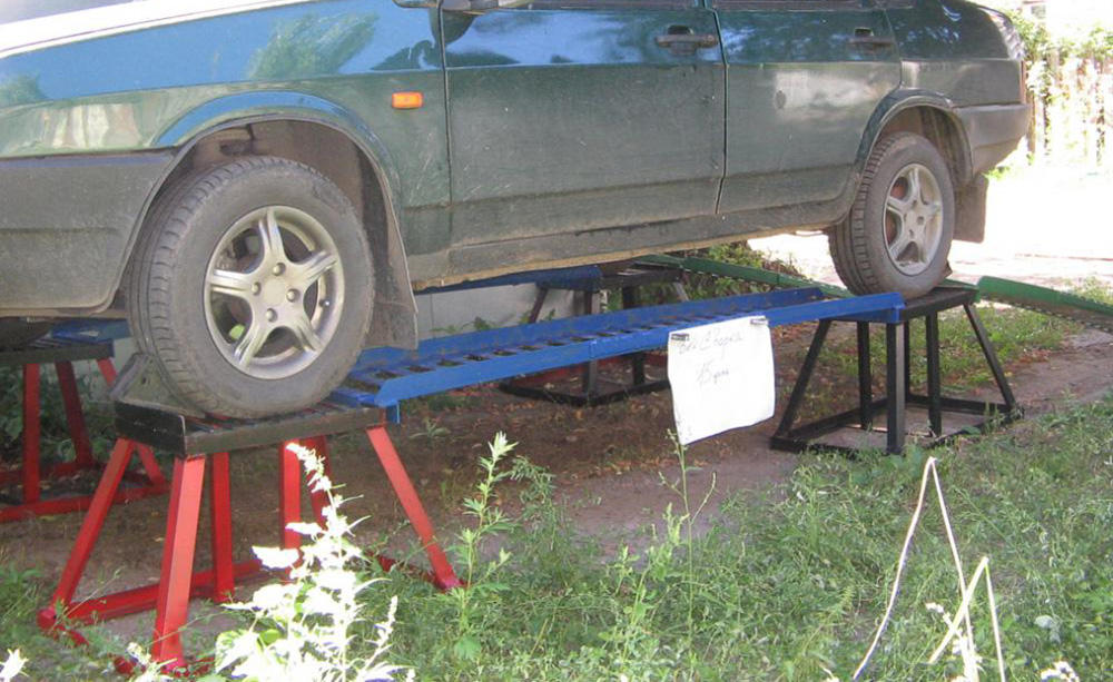 Такая переносная конструкция подразумевает, что авто будет находиться в горизонтальном положении на некоторой высоте над землей. Это обеспечивает больший комфорт при профилактических и ремонтных работах хозяину машины.