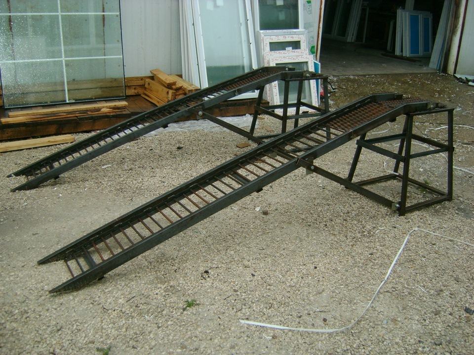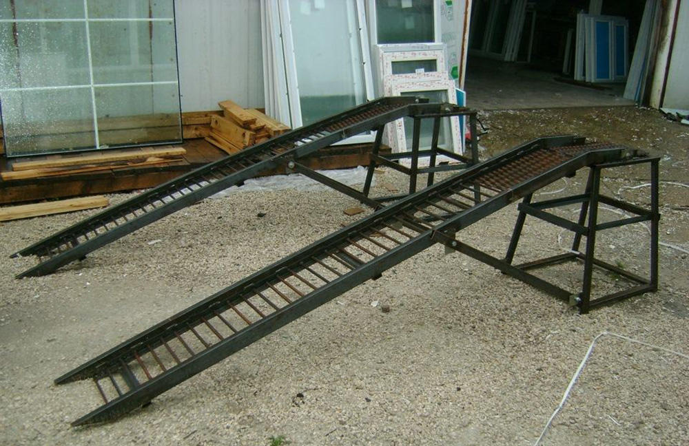Длина мостиков и въездных наклонных деталей определяется из личных потребностей, в зависимости от размеров авто. Ширина их должна быть достаточной для удобного прохода машины по наклонной и горизонтальной поверхностям. Сварить мостики нужно в виде «лесенок», соединяя отрезки уголка поперечинами нужной длины из прутка.