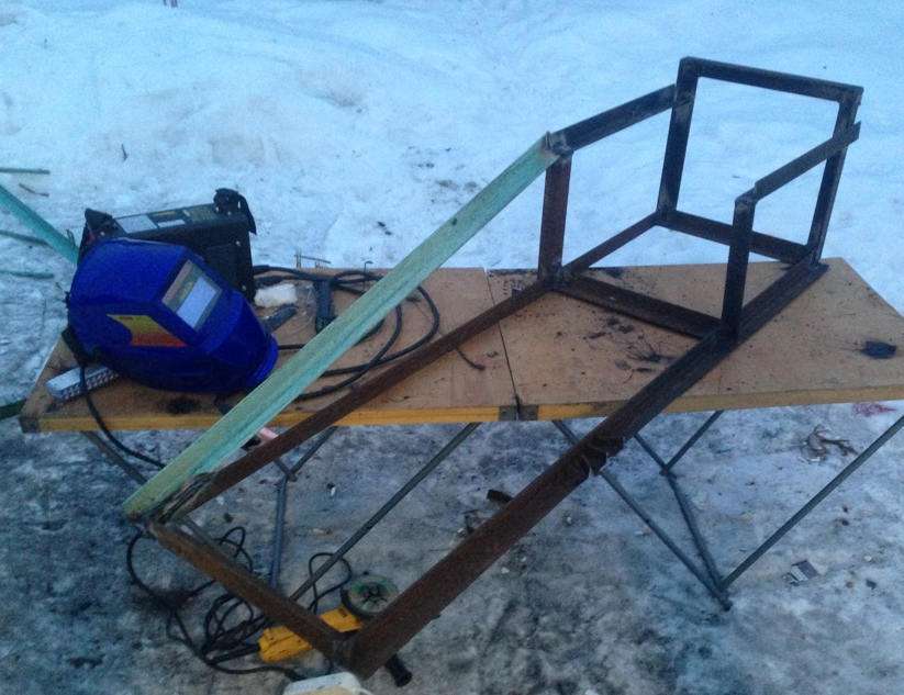 Делая пробный въезд, обратите внимание на поведения наклонной «лесенки». Если она прогибается, то придется сделать две промежуточные опорные рамки и прикрепить их болтовыми соединениями к уголкам