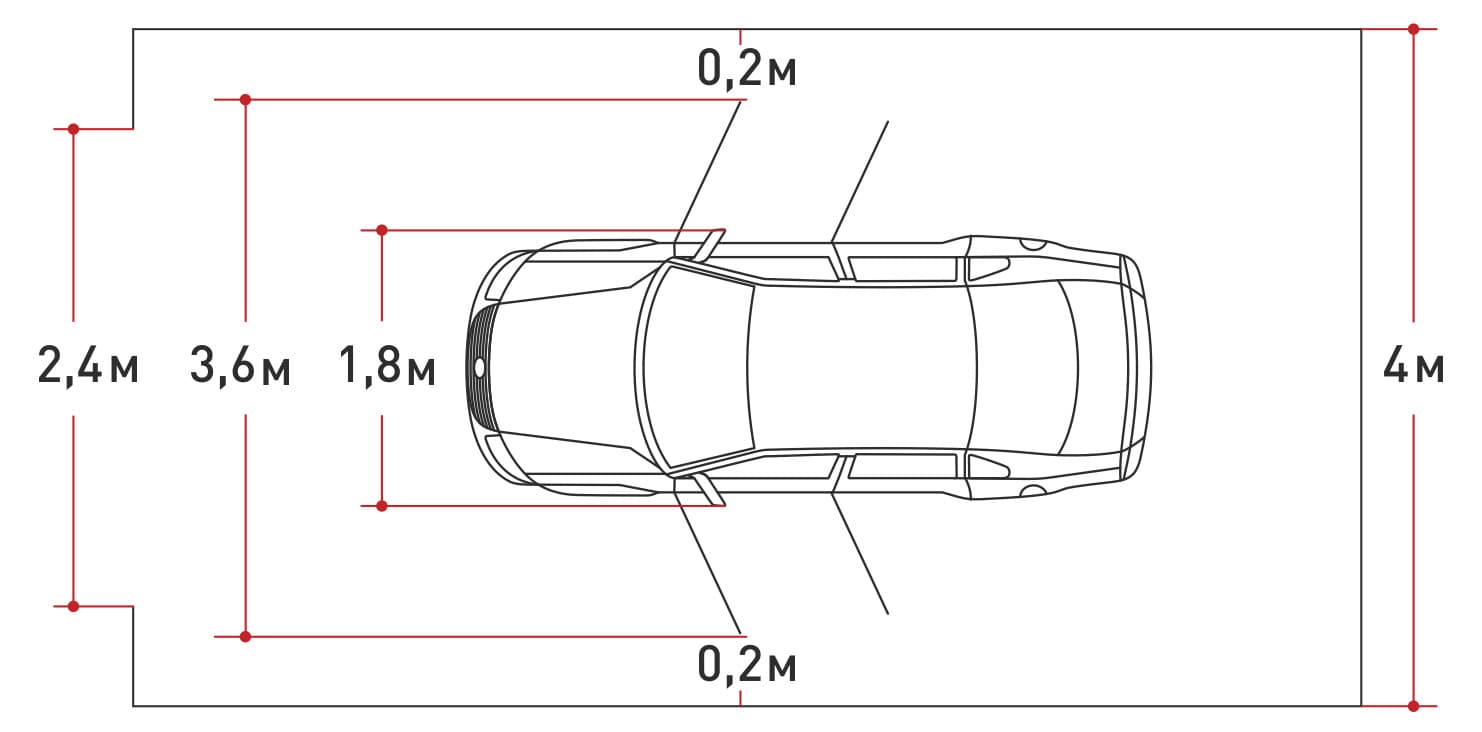 Для удобства посадки и высадки пассажиров ширина гаража должна быть на 20-30 см больше ширины автомобиля с открытыми дверьми.