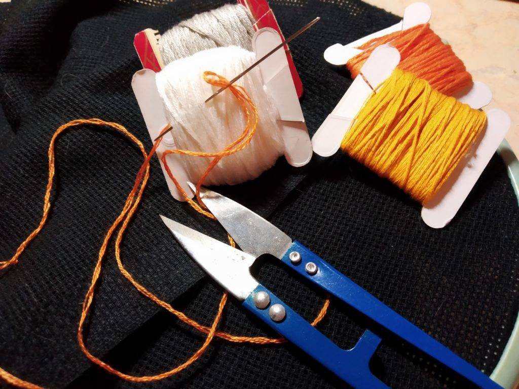 Ножницы подбирайте под себя, чтобы были острые и удобно было работать с ними. Не забывайте, что может возникнуть ситуация, когда придется распустить часть готовой вышивки. Для таких моментов подходят ножницы для рукоделия с узкими лезвиями. Ими удобно подбираться под вышитые крестики и разрезать стежки.