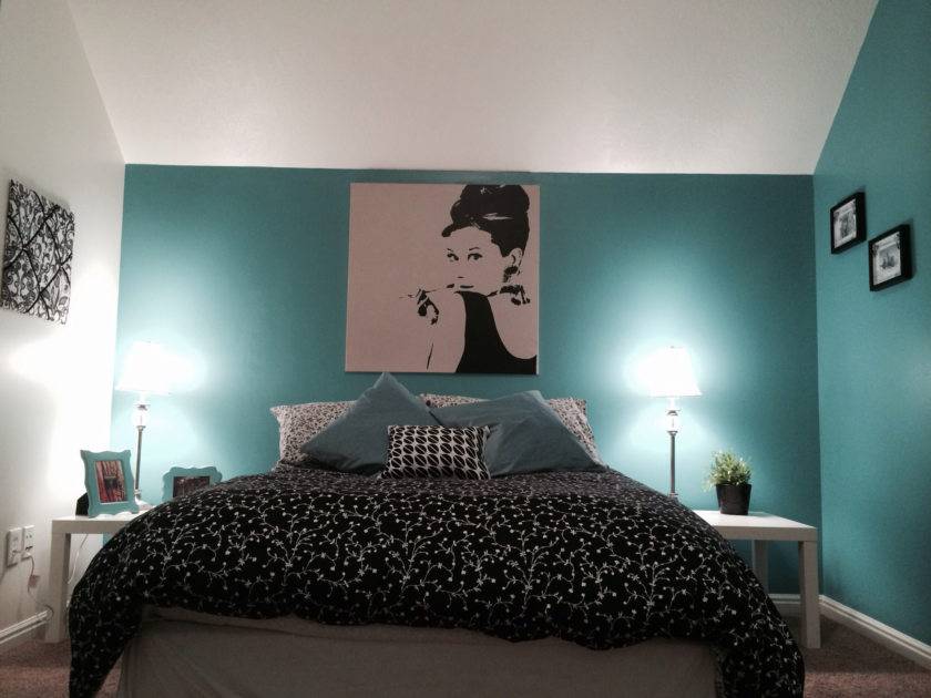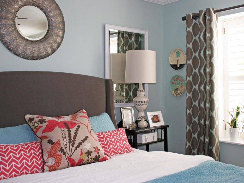 Бирюзовый цвет освежит спальню, а нежный аквамарин наполнит комнату светом и прохладой.