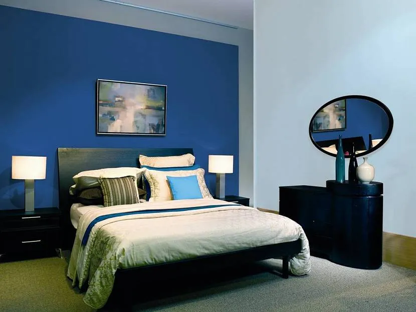 При проектировании маленькой спальни, безусловно, разумнее всего будет обратиться к ярким оттенкам, например, к голубому, который оптически расширяет интерьер. Если у спальни большая площадь, можно выбрать более темный цвет, например, темно-синий.