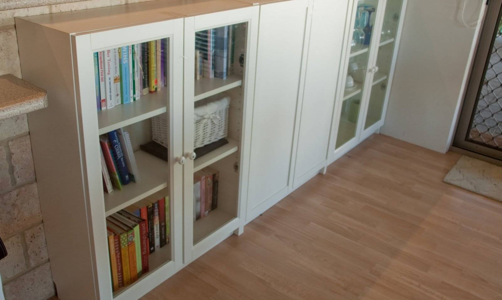 - с секциями витринами – для хранения книг или посудных принадлежностей;