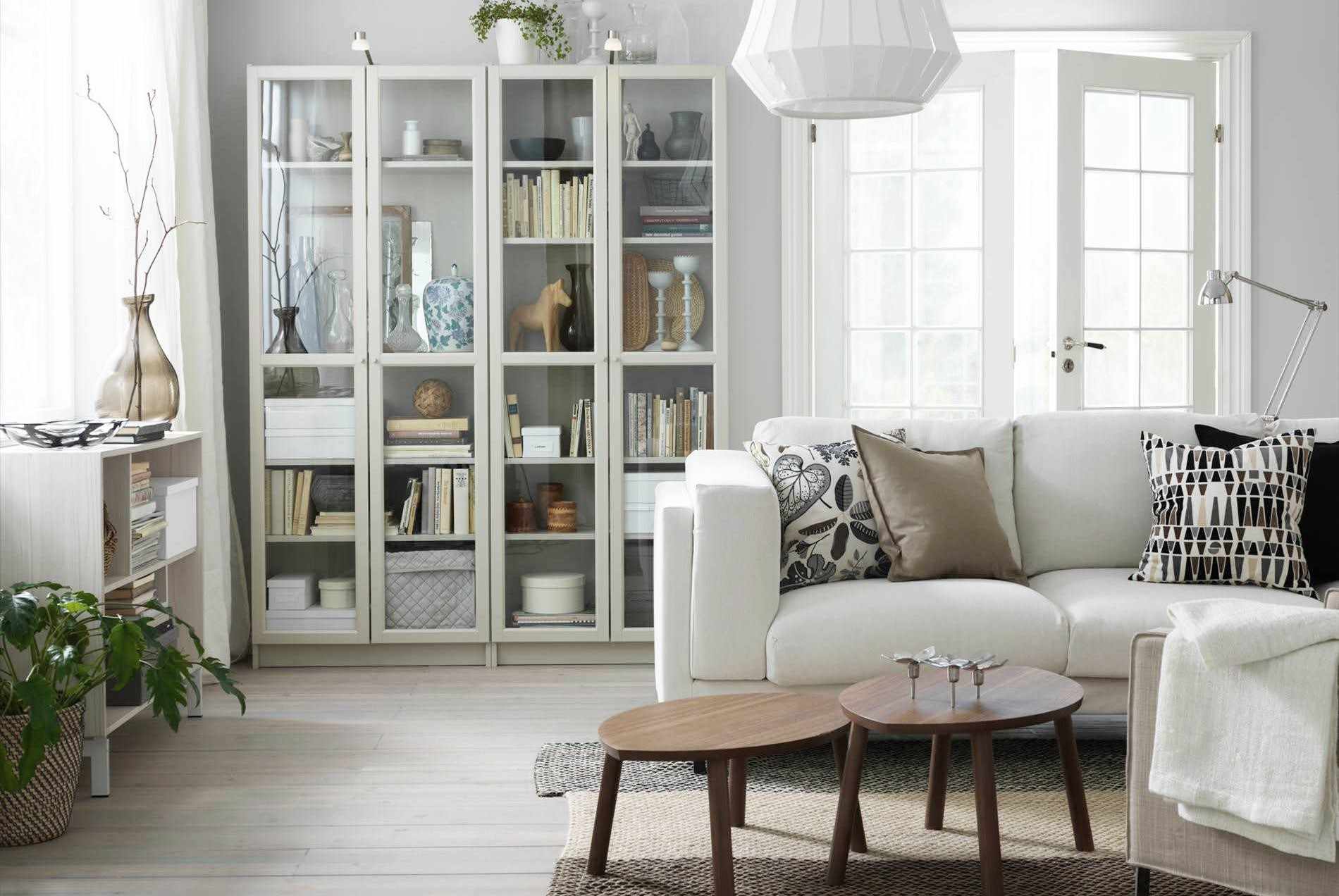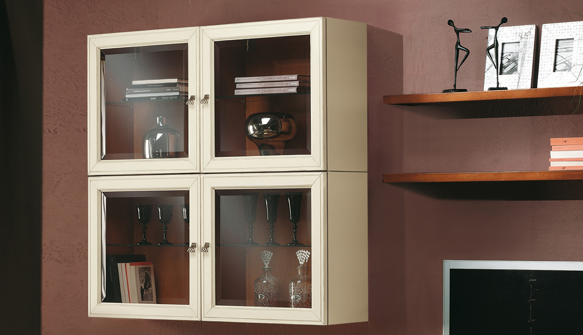 Шкафы витрины являются наиболее популярным предметом меблировки гостиной, ее украшением, смотрятся элегантно, подчеркивая изысканный вкус и статус хозяев, за счет своей прозрачности создают эффект легкости. Это может быть полностью стеклянный или разделенный на несколько секций шкаф, часть из которых скрывает его содержимое от посторонних глаз за глухими дверцами. Витрины несут скорее декоративную функцию, чем хозяйственную, они предназначены для хранения и демонстрации гостям самой дорогой посуды, антикварных вещей, коллекций оружия и сувениров, привезенных из дальних стран.