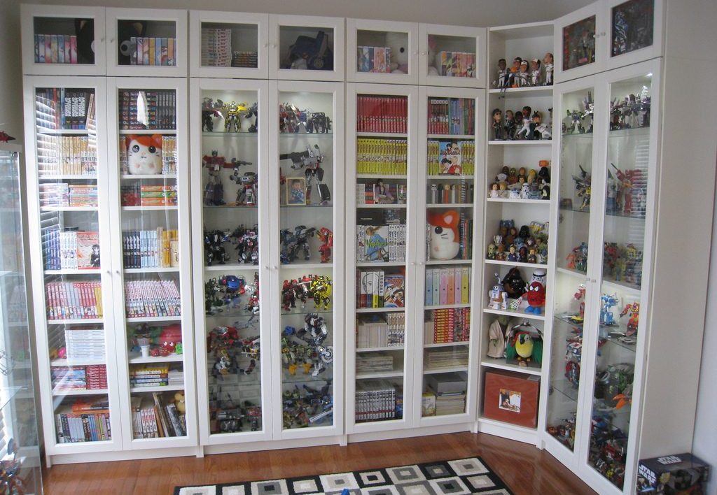 Поэтому в таком случае шкафы из дерева явно выигрывают. В то же время хрупкие и изящные статуэтки и декоративные элементы просто затеряются на грубых деревянных полках. Для них идеально подойдут пространства из стекла и легкого пластика. Подобные материалы только выгодно подчеркнут изящество и тонкость данных предметов.