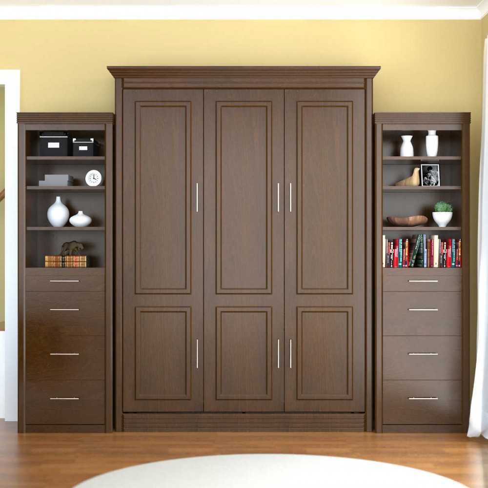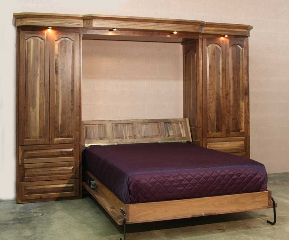 Другой прием — это встроенная в шкаф кровать с подъемным механизмом , это эргономичный, мобильный способ обеспечить дополнительное спальное месте в квартире.
