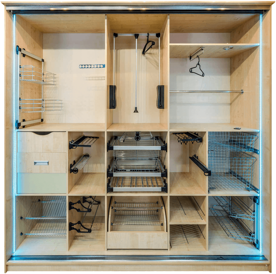 По этому, грамотное распределение внутреннего пространства очень важно, так как оно напрямую влияет на правильную работу встроенной фурнитуры