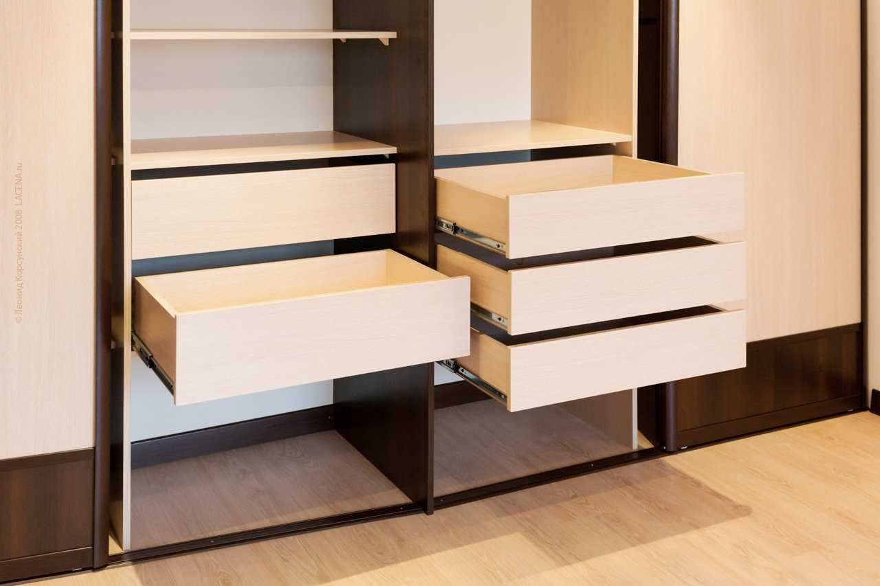 - Если пространство не позволяет установить высокие шкафы, то лучше выбрать варианты с выдвижными ящиками с различной площадью;