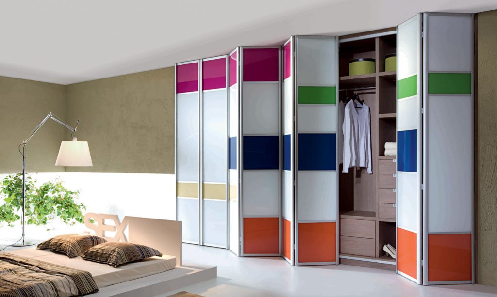 Для небольших спален идеально подойдет угловой шкаф-купе. Он не занимает много полезной площади, а вмещает больше вещей, чем линейный вариант.