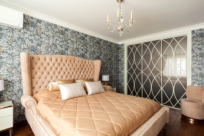 Классика – тот случай, где уместен не только деревянный массив, но еще и ценные дорогие сорта. Резной декор, узоры на стекле, позолота, состаренная фурнитура – все это будет кстати в такой спальне. А вот для неоклассики от всей роскоши можешь оставить только несколько детализированных акцентов.