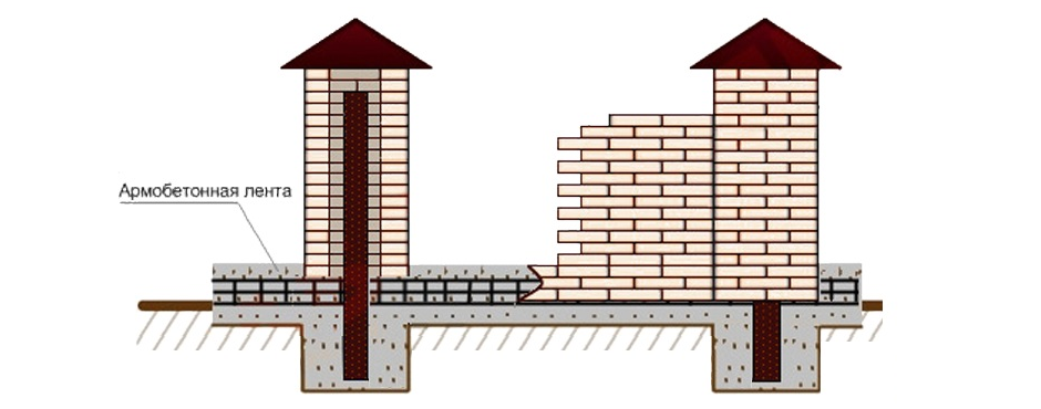Для получения более прочного кирпичного столба лучше всего в середину опору помещать арматуру стержневого или трубчатого типа. Оптимальным вариантом является их заведение под уровень промерзания почвы и бетонирование.