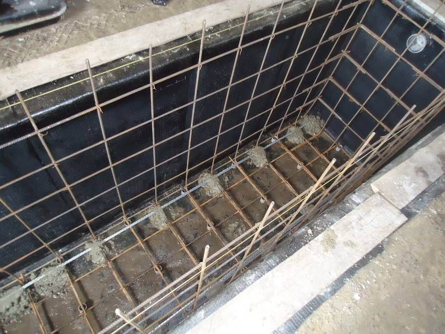 Полимерный. Это — материал, обладающий сложной синтетической структурой и превосходными гидроизоляционными свойствами. Разделяются две разновидности: многослойные и однослойные, первые обладают лучшими качествами и могут прослужить значительно дольше, до пятидесяти лет, вторые – дешевле. Полимерную гидроизоляцию укладывают на арматуру с ячейками размера 10х10.