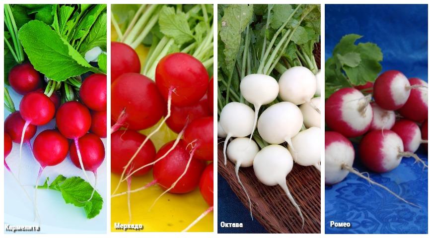 Октава. Оригинальная окраска, дружный урожай. Высокоурожайный сорт с дружной отдачей урожая. Период от всходов до технической спелости 31-35 дней. Розетка листьев крупная. Корнеплод округлый, гладкий, белого цвета. Масса 25 г, диаметр 3-4,5 см. Мякоть плотная, средне-острая, отличного вкуса. Длительное время сохраняет высокие вкусовые качества. Слабо реагирует на длину дня. Устойчив к цветушности. В осеннем обороте корнеплоды достигают максимального размера.