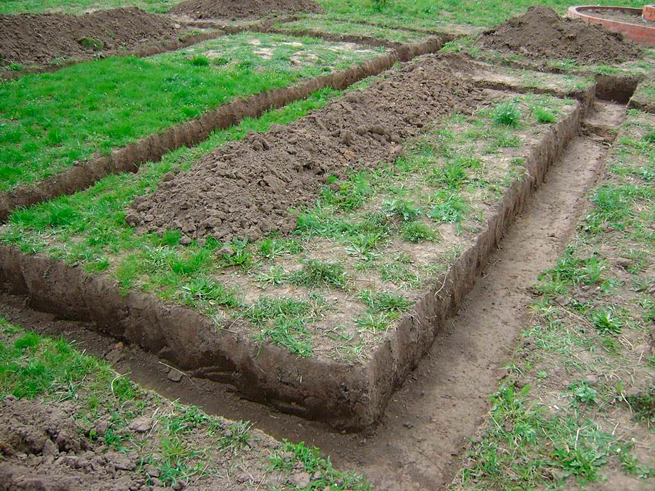 Расчистить площадку под постройку. Сделать разметку периметра с помощью колышков и натянутой лески или шнура. Выкопать траншею глубиной до 50 см. Дно засыпать песчанно-щебневой смесью или просто песчаной. Смочить водой и утрамбовать;