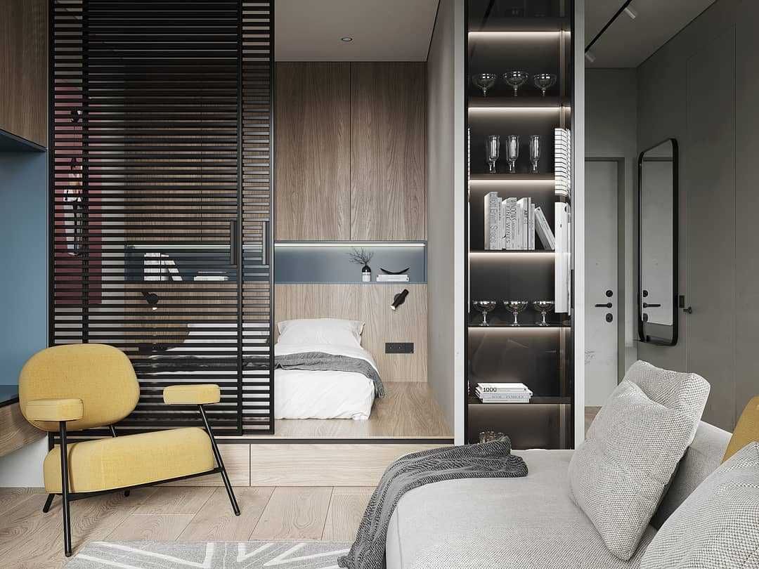 Разделенная спальня и гостиная сделают интерьер уникальным и неповторимым