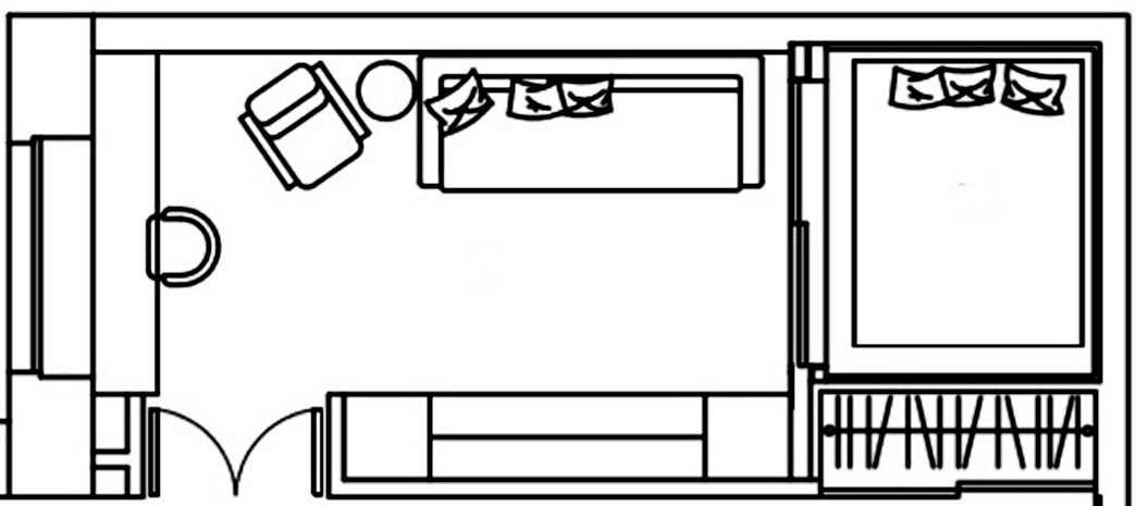 Одним из таких приемов является объединение спальни и гостиной в одно помещение.