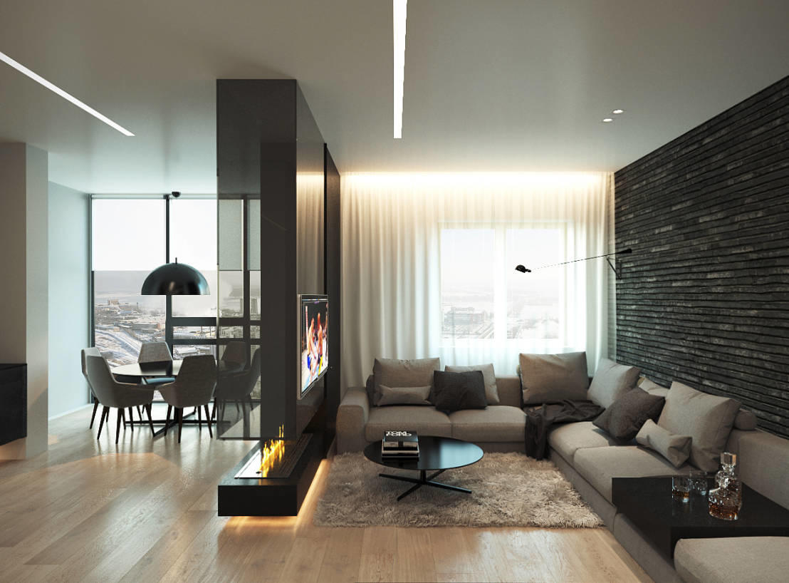 В таком помещении будет две основные зоны: общая и интимная или, по-другому говоря, общественная и частная. В общую зону, помимо гостиной, может входить и мини-кабинет.