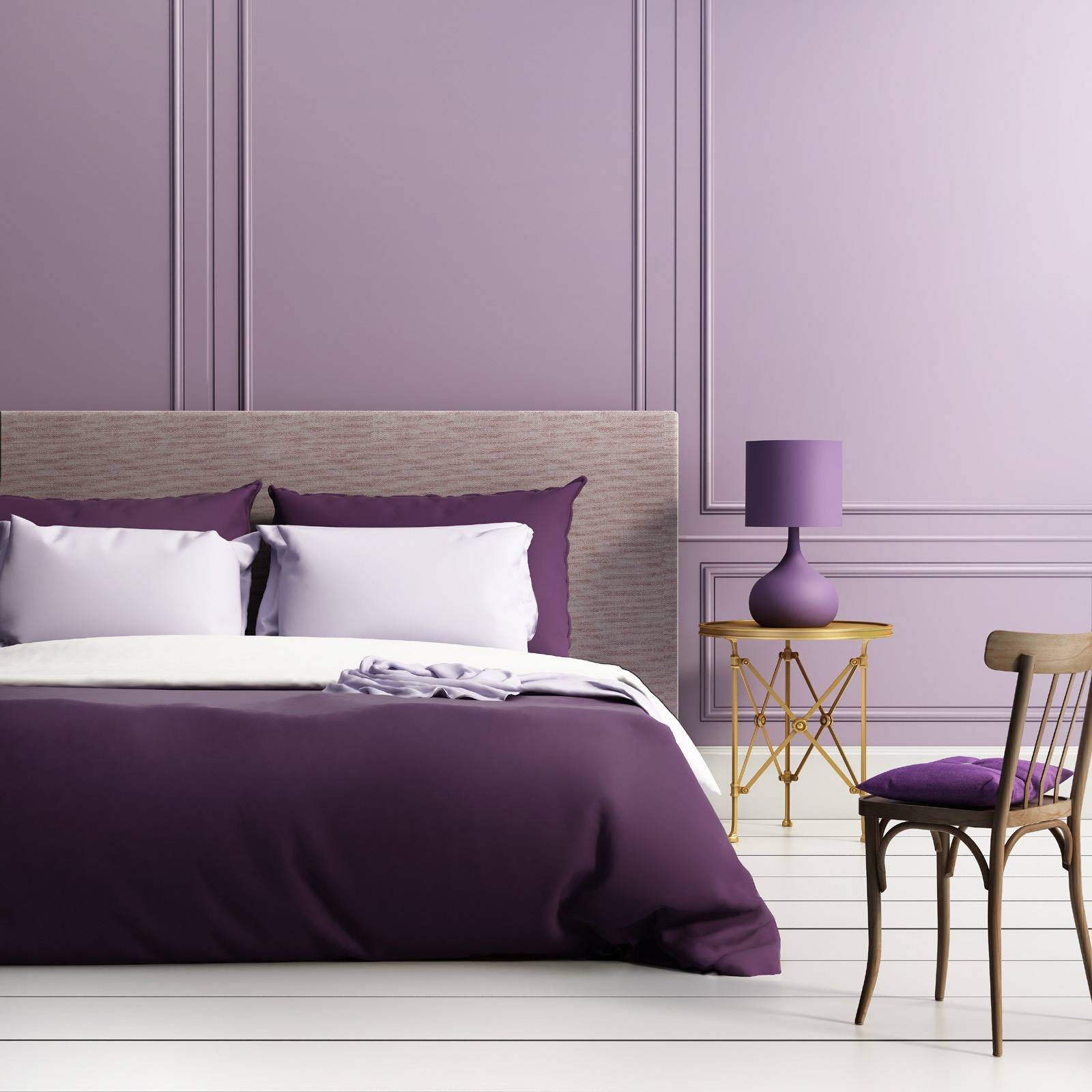 Цвета, сочетаемые в спальне в сиреневых тонах: