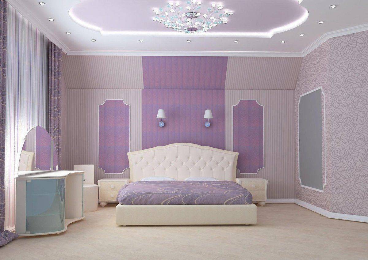 Стены и потолок в сиреневой спальне
