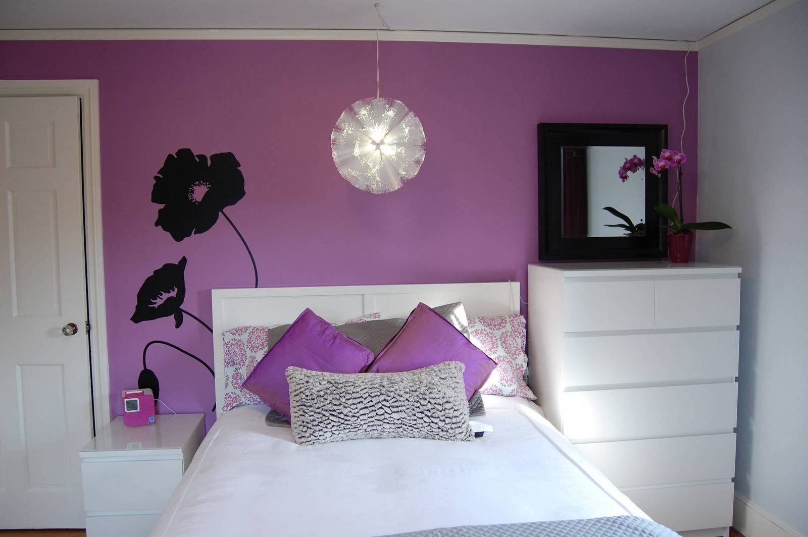 Оформление комнаты с добавлением черных акцентов к светлому лиловому тоже способно добавить уюта и изысканности. Главное, не переборщить с темными оттенками, сохранив романтический настрой.