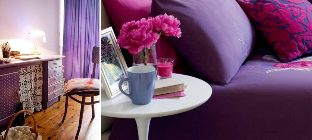 Фиолетовый цвет в спальне, фото