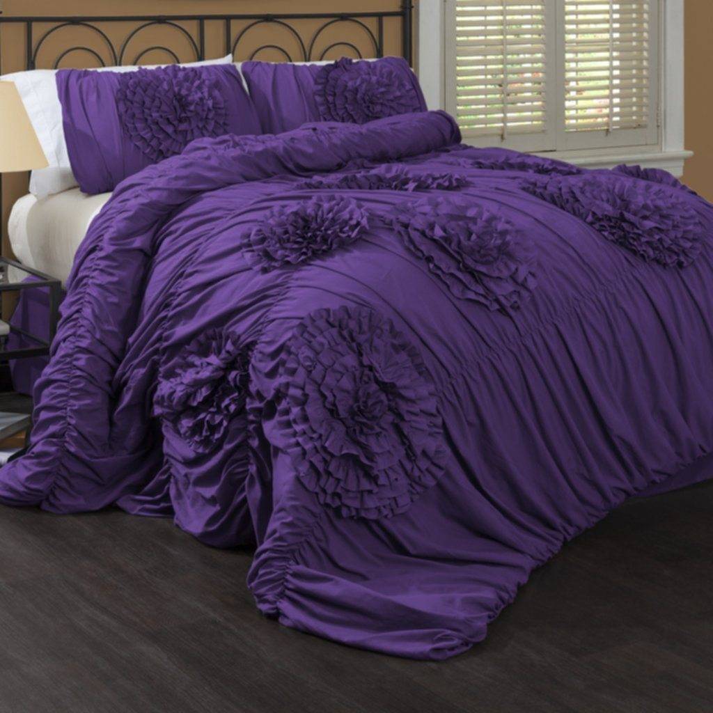 Не стоит сочетать лиловый с ярким синим и красным. Это создаст негативную атмосферу, что совсем не характерно для спальни. Если комната небольшая, нежелательно покупать особи с крупным рисунком. Лучше предпочесть однотонные или с некрупным нейтральным принтом.