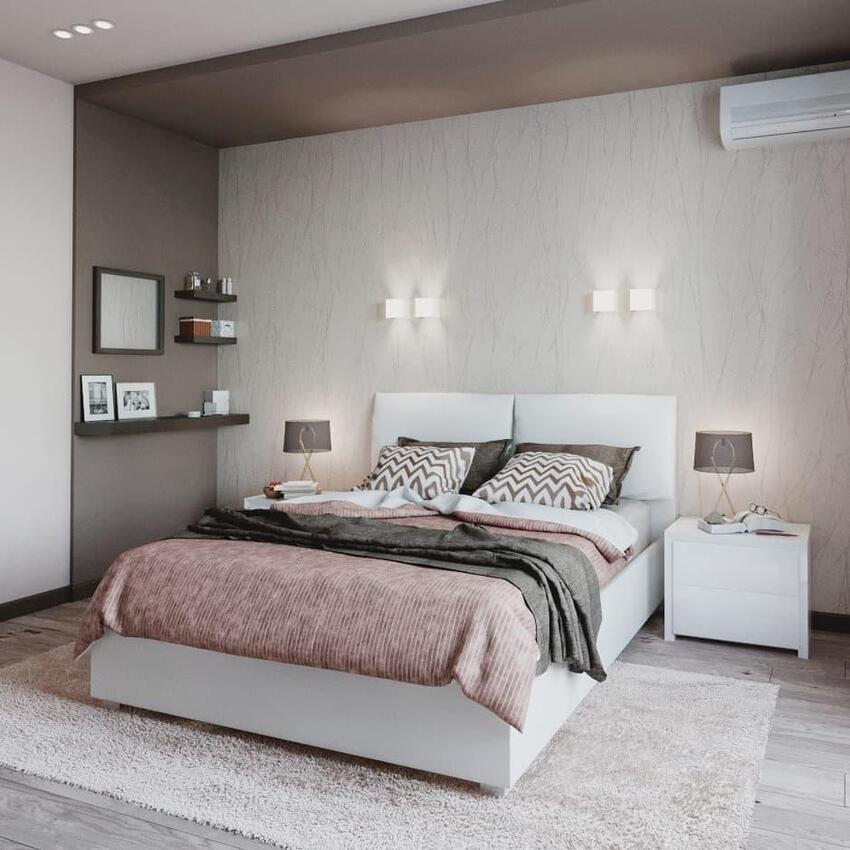 Организация освещения в спальне с минимализмом в нишах над изголовьемИсточник Pinterest