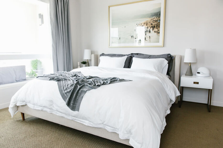 Текстиль. Дизайнеры советуют отказаться от большого числа текстиля в комнате. Жалюзи вместо штор, неброское постельное белье и минимум в количестве декоративных подушек.