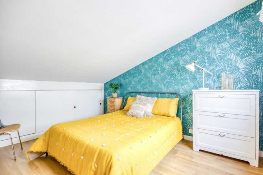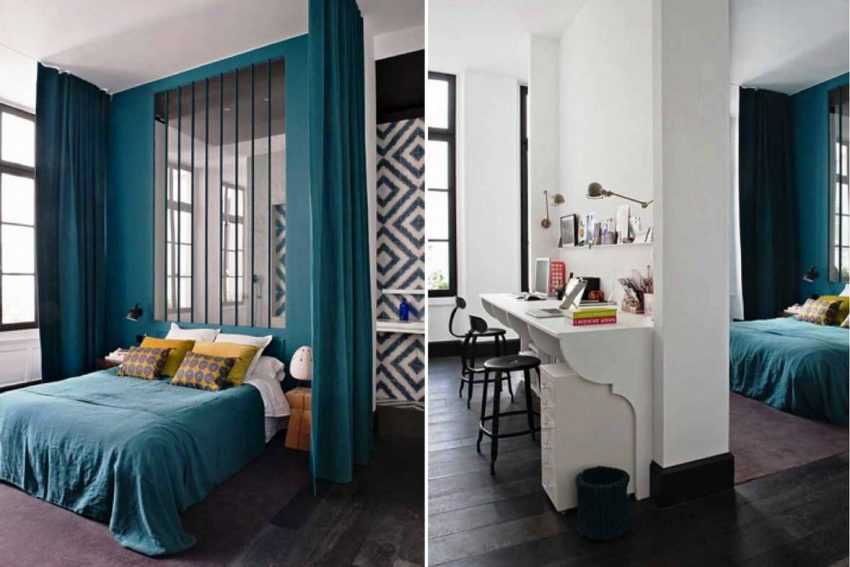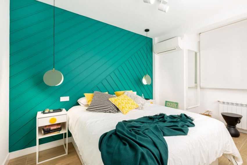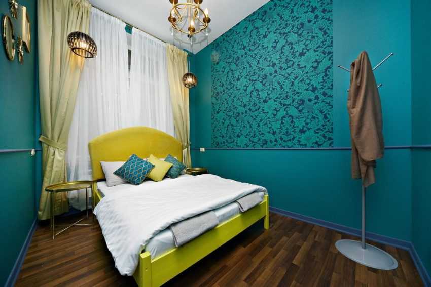 Бирюзовый не должен занимать больше трети пространства в спальне, иначе комната будет визуально утомлять.