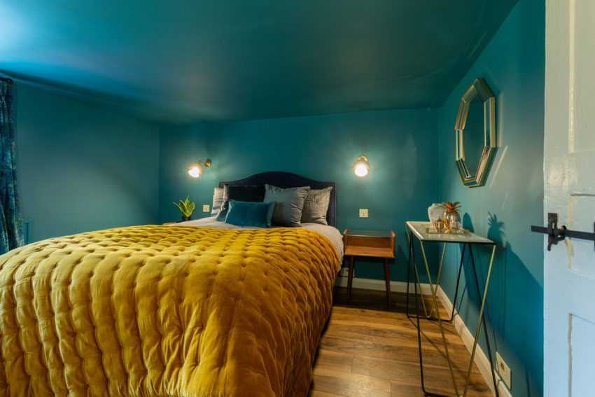 С каждым годом все больше владельцев квартир и домов отдают предпочтение темно-бирюзовому цвету при декорировании спальной комнаты.