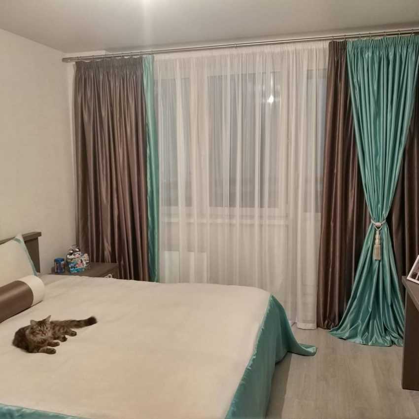 Оформите комнату, учитывая, сколько в нее попадает естественного света. Отсутствие солнца предлагает отдать предпочтение воздушным легким шторам с неброским рисунком. Бирюзовые шторы в спальне могут выглядеть как двойная модель в союзе с желтым оттенком. Не запрещается использовать образцы, как длинные, так и короткие.