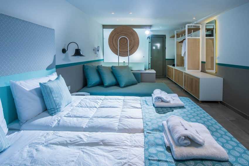 Бирюзовый интерьер спальни подходит для тех, кто хочет создать в доме атмосферу отдыха